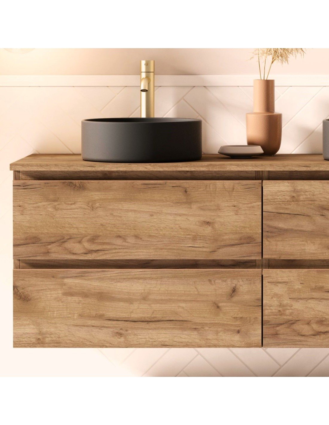 Mueble de baño suspendido HONEY en madera con tapa madera