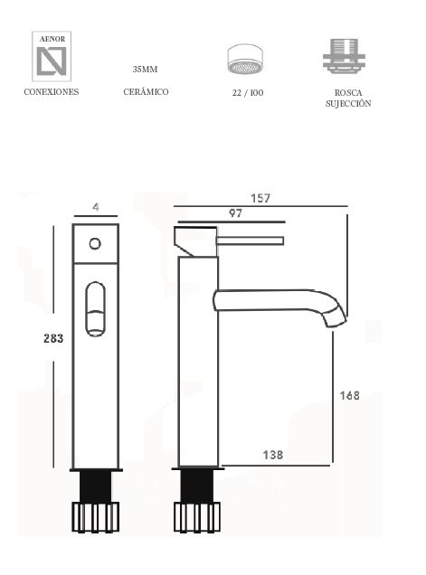 - Cartucho cerámico de 35 mm, normalizado para un manejo suave y preciso